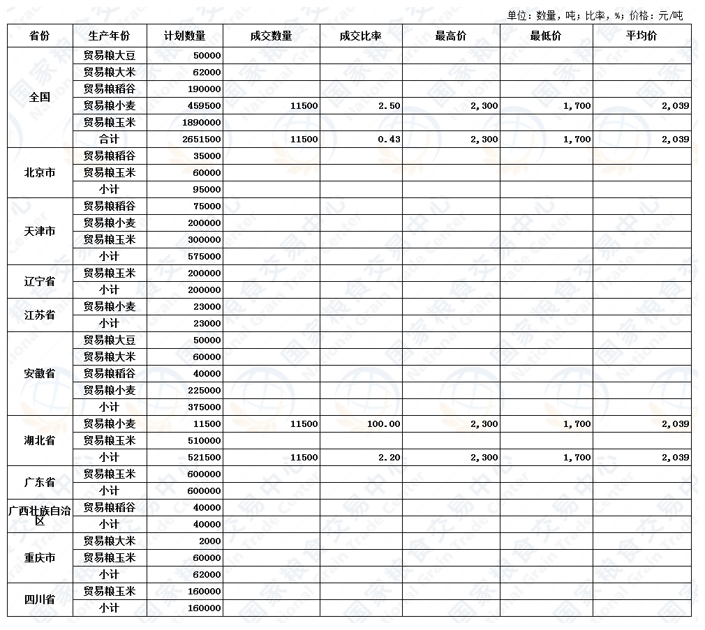 8月16日贸易粮协商交易采购结果